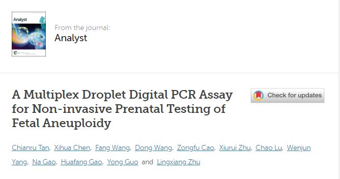 | 导读 | 2019年1月8日,清华大学医学院生物医学工程系郭永实验室合作在《分析学家》(Analyst)在线发表题为《基于多重微液滴数字PCR的胎儿染色体非整倍体无创产前检测方法》 |