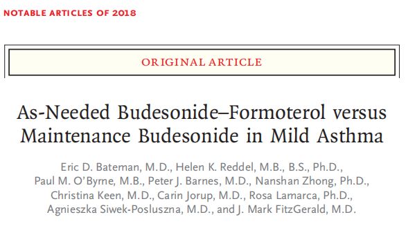 第三篇是来自于开普敦大学肺癌研究所的团队发表的《As-Needed Budesonide–Formoterol versus Maintenance Budesonide in Mild Asthma》,该研究对比了两种治疗轻度哮喘的药物。
