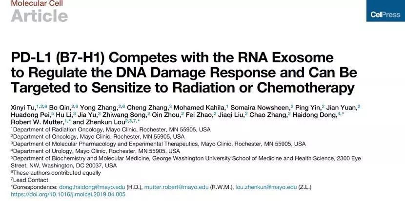 Robert W. Mutter, Zhenkun Lou. PD-L1 (B7-H1) Competes with the RNA Exosome to Regulate the DNA Damage Response and Can Be Targeted to Sensitize to Radiation or Chemotherapy