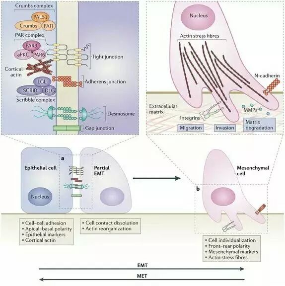 上皮-间充质转化(EMT)是指上皮细胞通过特定程序转化为具有间质表型细胞的生物学过程,在癌症转移的过程中发挥了重要的作用。EMT是上皮细胞来源的恶性肿瘤细胞获得迁移和侵袭能力的重要生物学过程。