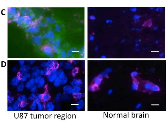 为了测试ECM靶向药物递送的潜在益处,研究者首先将该概念应用于无法治愈的胶质母细胞瘤(GBM)。尽管进行了积极的手术,化疗和放射治疗,患者的预后仍然较差,中位生存期不到2年。因此迫切需要更好的GBM治疗。 最近的研究表明GBM靶向免疫治疗通过白细胞介素-13(IL-13)靶向的嵌合抗原受体(CAR)T细胞在选定的患者中可以在短时间内产生显着效果,并且证实了靶向硫酸软骨素蛋白多糖4的CAR T细胞在小鼠模型中的功校。 因此,这针对GBM,特别是ECM组件可以提供新的治疗策略。