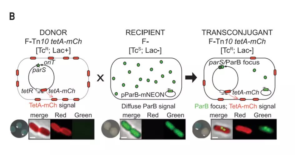 传播问题搞清楚了,那耐药性到底又是如何产生的呢?通过荧光标记,研究人员观察到耐药菌和敏感细菌之间的DNA传递。只需追踪荧光的进展情况,他们就能了解“泵”的DNA是如何从一种细菌迁移到另一种细菌的,以及它在受体菌中的表达情况。