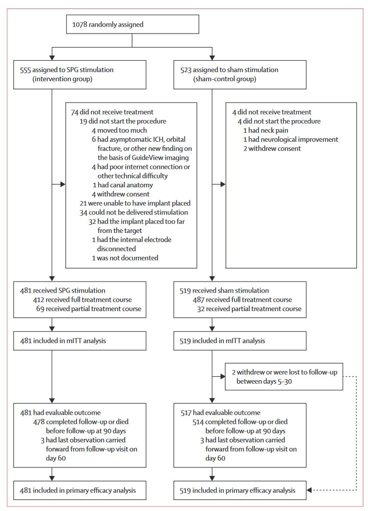Natan M Bornstein, Jeffrey L Save. An injectable implant to stimulate the sphenopalatine ganglion for treatment of acute ischaemic stroke up to 24 h from onset (ImpACT-24B): an international, randomised, double-blind, sham-controlled, pivotal trial.