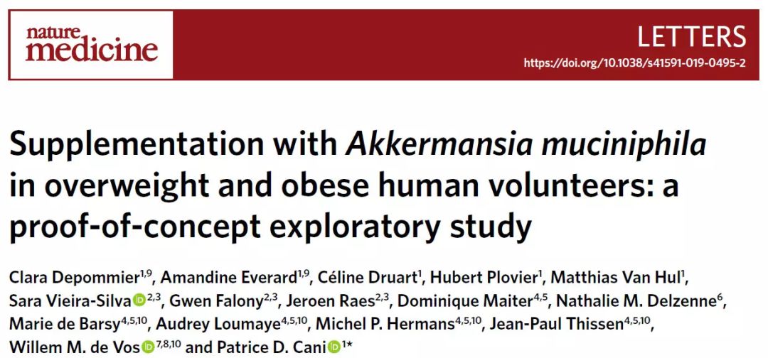 Clara Depommier Amandine Everard Céline Druart Supplementation with Akkermansia muciniphila in overweight and obese human volunteers: a proof-of-concept exploratory study .