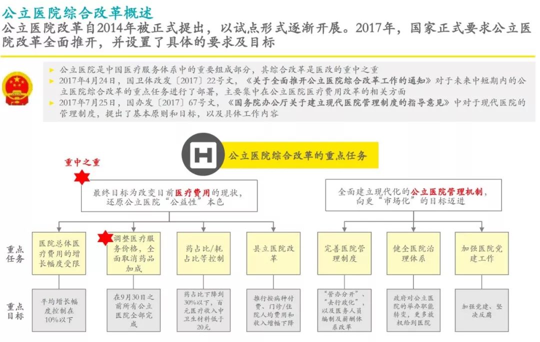 第二部分讲公立医院的综合改革。一方面是医疗费用,国家指导说让它回到公益性。另一方面从管理上,原来传统的方式能不能有更现代化的管理。