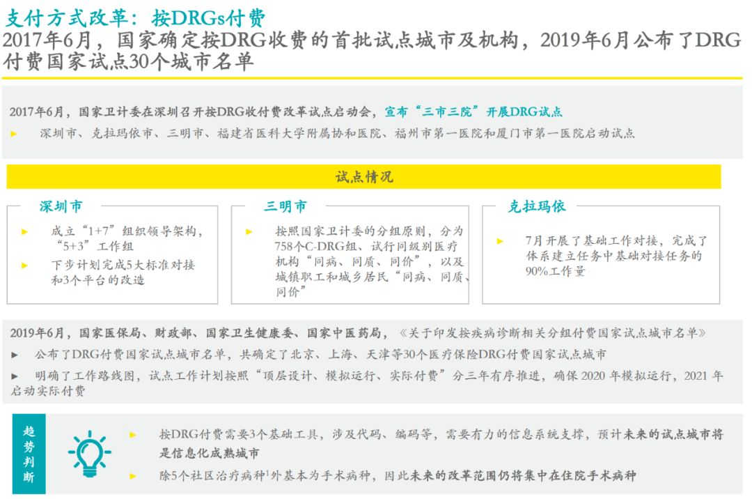 但是,DRGs 付费模式一旦是形成了之后,对药品诊断试剂耗材来说,一定是压缩的。项目有没有必要,对临床路径来说,到底有没有必要,没有必要就不要去做。