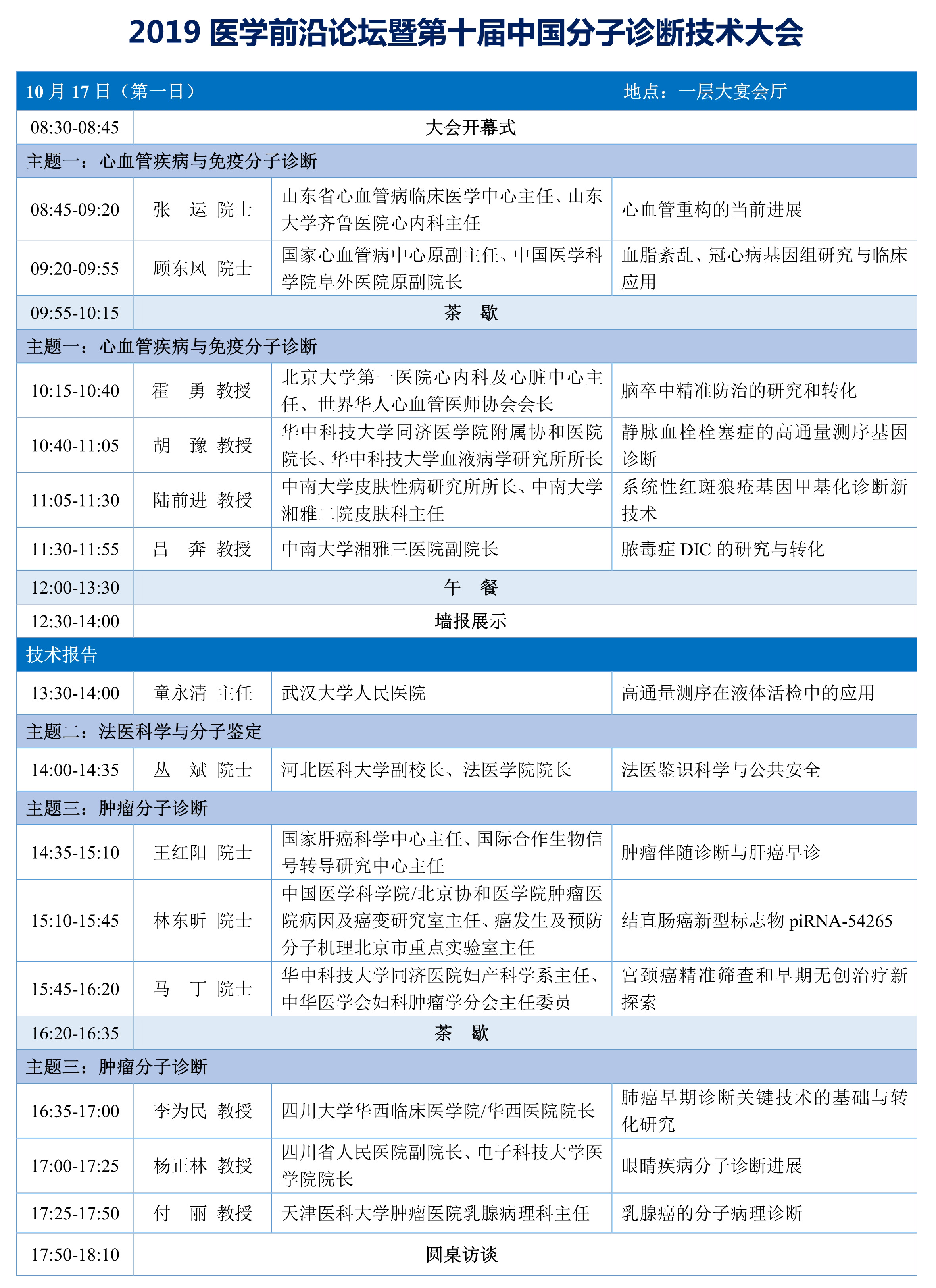 【大会议程】2019医学前沿论坛暨第十届中国分子诊断技术大会诚邀您的加入!