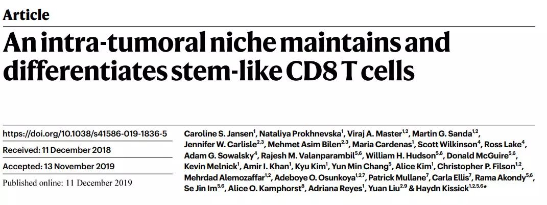 Jansen, C.S., Prokhnevska, N., Master,An intra-tumoral niche maintains and differentiates stem-like CD8 T cells