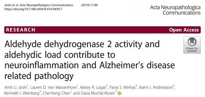 Amit Joshi et al., (2019) Aldehyde dehydrogenase 2 activity and aldehydic load contribute to neuroinflammation and Alzheimer’s disease related pathology. Acta Neuropathologica Communications.