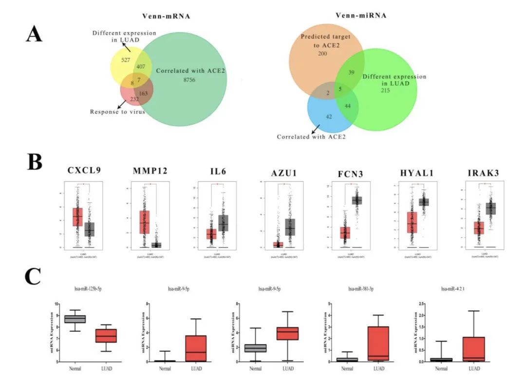 本研究发现肺腺癌患者ACE2表达上调,新冠肺炎易感性上升;但ACE2在新冠肺炎病程不同阶段的角色不同,尽管其介导病毒的入侵,但维持ACE2的正常表达对避免细胞因子风暴有重要作用。本研究预测了ACE2表达的上游调节剂miR-125b-5p,这个想法对缓和临床新冠肺炎重症患者的病程有借鉴意义。(转化医学网360zhyx.com)