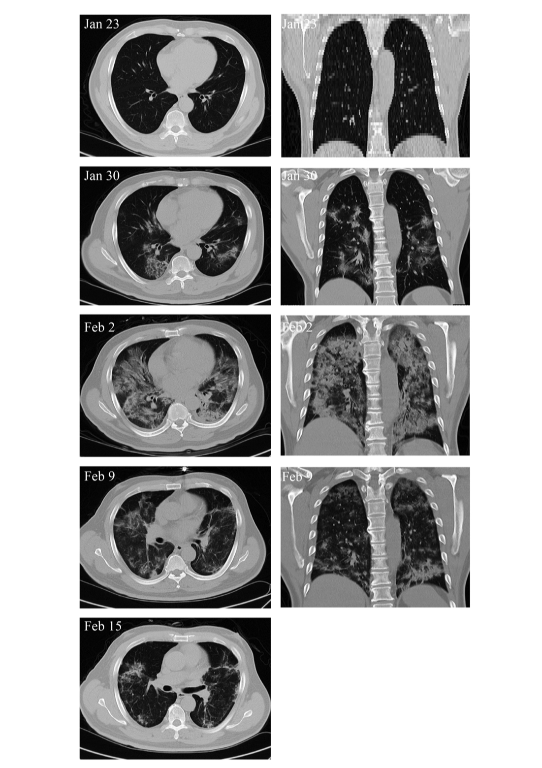 其直接效应表现在:移植后2周内,血浆淋巴细胞水平明显下降,血浆C反应蛋白水平从105.5 g/L(2月1日达峰191.0 g/L)降低10倍左右,恢复到10.1 g/L,表明炎症反应迅速缓解;在不额外吸氧的情况下,血氧饱和度从89%升高至98%,表明肺泡换气功能基本恢复。