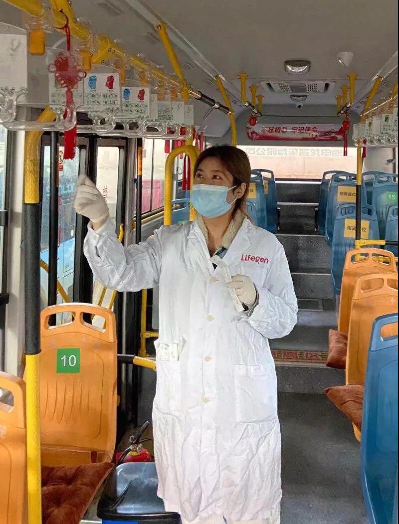 3月14日上午,陕西省西咸新区沣东新城王寺交通场站。贾欣蓓用棉签对着多辆公交车的座位、扶手、吊环采集了一上午,149处标本,封口、编号、套袋,密封,消毒、装箱,由专门的送样人员冷链运往实验室。