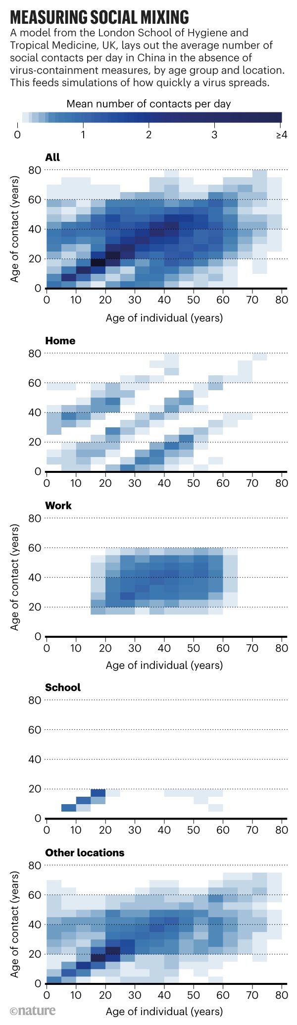 基于代理的模型与基于等式的模型构建了相同类型的虚拟世界,但是每个人在特定的一天或相同的情况下可以有不同的行为。伦敦卫生和热带医学学院(LSHTM)的流行病学家Kathleen O 'Reilly说:“这些非常具体的模型非常需要数据。”“你需要收集有关家庭、个人如何去上班以及他们周末做什么的信息。例如,伦敦管理学院(LSHTM)、伦敦大学学院(University College London)和英国剑桥大学(University of Cambridge)的研究人员通过英国广播公司(BBC)的一个公民科学项目,从逾3.6万名志愿者那里收集了社交联系数据。一些帮助英国政府的建模者使用了这个数据集,该数据集在2月份的预印本中被报道。