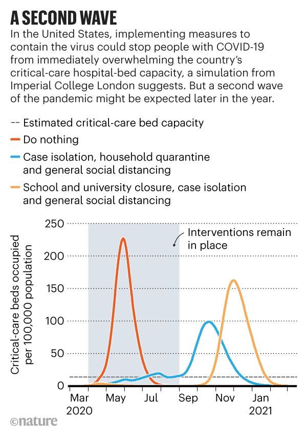 弗格森说,欧洲各地的全国性禁闭已经在努力减少SARS-CoV-2的传播,正如预期的那样。但对于那些担心本国经济、担心被囚禁公民的身心健康的国家来说,社交隔离必须维持多久是一个大问题。目前,社交隔离将会减少病毒的传播,但解除这些措施可能会在今年晚些时候或明年让大流行的第二波爆发成为可能,一个帝国模型提出了这一建议(见“第二波”)。