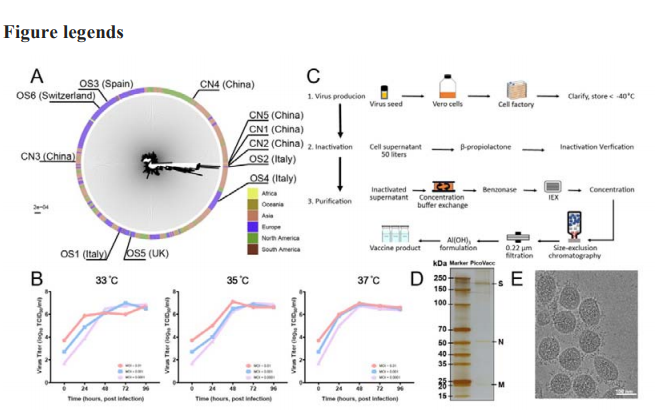 由SARS-CoV-2导致的COVID-19已经给人类健康、生命和全球经济带来了前所未有的危机。由于这种病毒的新颖性,目前还没有针对SARS-CoV-2的特定治疗方法或疫苗。因此,迫切需要研制有效的SARS-CoV-2疫苗。研究人员用一种纯化灭活SARS-CoV-2病毒候选疫苗(piCoVacc)进行中试规模生产,纯化灭活SARS-CoV-2病毒候选疫苗会诱导小鼠、大鼠和非人类灵长类动物产生SARS-CoV-2特异性中和抗体。