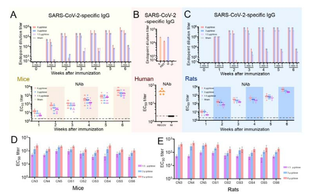 在此研究中,8只恒河猴被故意感染了病毒,在接触病毒7天后,在4只体内注射高剂量疫苗的恒河猴,检测他们的咽喉和肺部没有病毒;那些注射较低剂量疫苗的恒河猴显示出一些感染冠状病毒的特征。注射低剂量疫苗的恒河猴的病毒水平远低于已经感染病毒的未注射疫苗的恒河猴的病毒水平。