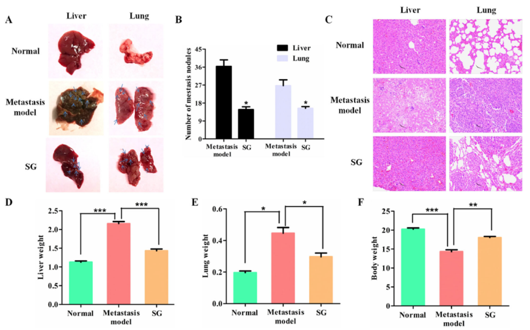 结果表明血根碱对具有转移能力的LoVo细胞具有抑制作用,对LoVo细胞的迁移和转移能力都有遏制作用。 血根碱可以减少裸鼠肿瘤转移至肝和肺的可能性。这一现象可以清新地通过H&E染色观察到。进一步的体外和体内研究表明血根碱对LoVo细胞的Wnt/β–catenin信号通路有抑制作用,可以减少EMT分子标志物的表达。
