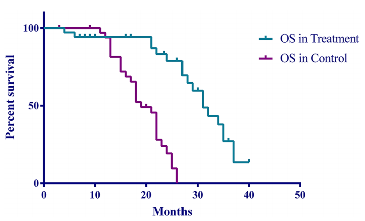 图3. 大剂量VitC(1.0g/kg)联合化疗对晚期三阴乳腺癌患者无疾病进展生存期(PFS)与总生存期(OS)的影响