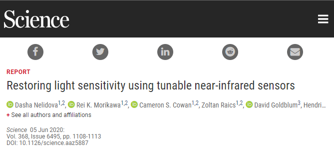"Restoring light sensitivity using tunable near-infrared sensors" Science (2020).science.sciencemag.org/cgi/doi … 1126/science.aaz5887