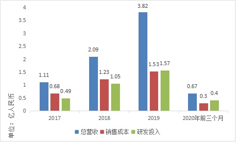 2017 年至 2019 年,燃石医学营收分别为人民币 1.11 亿元、2.09 亿元、3.82 亿元,同比增速均在 80%以上。就盈利能力而言,2017 年到 2019 年,燃石医学毛利润逐年增加,分别为人民币 7170 万、1.4 亿元、2.7 亿元,不过在大量研发、营销等开支的压力下,公司同期净亏损分别为人民币 1.31 亿元、1.77 亿元、1.69亿元。2020 年第一季度,燃石医学的营收为 6730 万元,较 2019 年同期减少 35.5%;毛利润则同比减少 42.7%至 4480 万元,净亏损则从 2019 年同期的 1,590 万元增至 5,260万元。近四年亏损已经超过 5 亿元。