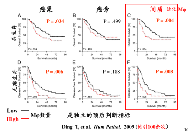 得出结论:肝癌组织中,癌巢和间质中的Mφ数量均与预后成负相关