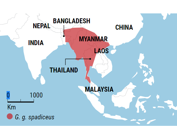 王等人对836种鸟类的全基因组进行了测序及比较,得出结论:在约公元前7500年左右,东南亚北部或中国南方的人驯养了现代鸡的祖先——红原鸡(Galus gallus spadiceus)亚种。现代鸡主要来自现在缅甸、老挝、泰国和中国南方的驯养和野生品种(如下图)。