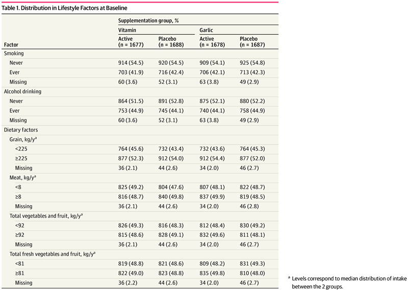 【2】Guo Y, Li Z, Zhang J, et al. Association Between Lifestyle Factors, Vitamin and Garlic Supplementation, and Gastric Cancer Outcomes: A Secondary Analysis of a Randomized Clinical Trial. JAMA Netw Open. 2020;3(6):e206628. doi:10.1001/jamanetworkopen.2020.6628