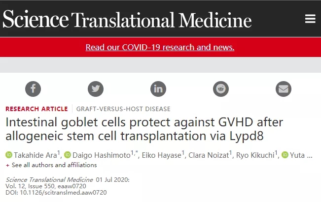 【Science子刊】警惕!干细胞移植后,肠道杯状细胞的损失会导致致命疾病