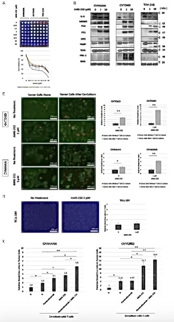 在这项研究中,他们用AMG-232治疗MDM2过表达的卵巢癌细胞系。实验数据显示,AMG-232可以使免疫细胞更有效地杀死肿瘤细胞,并降低了IL-6的水平。这些结果表明,MDM2抑制剂可与免疫疗法联合,以提高其疗效。