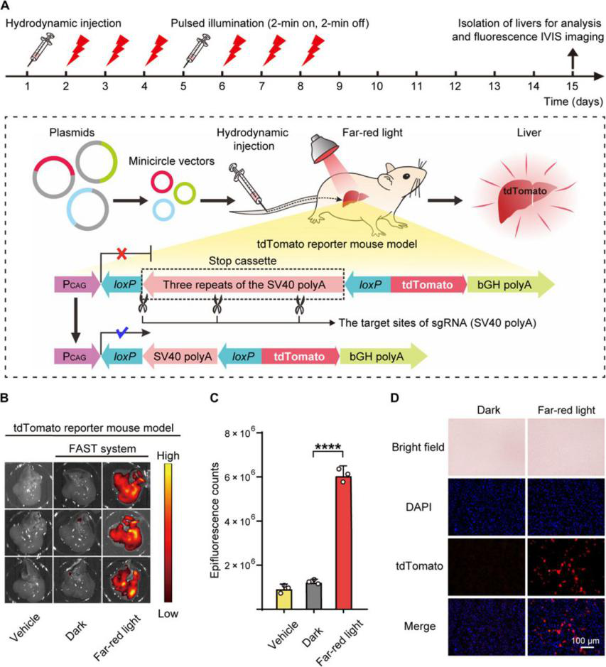 这一次,他们开发出了远红光激活的Split-Cas9(FAST)系统,该系统可无创地诱导动物组织内部深处的细胞中的基因编辑活性。