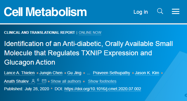早在2014年,阿拉巴马大学伯明翰分校(UAB)的研究人员发起了一项人体试验,糖尿病患者会使用维拉帕米(降压药),因为他们有临床前证据表明该药物可以降低TXNIP(一种可以破坏胰腺中产生胰岛素的β细胞。这项研究得出的结果有好有坏,但是同一组UAB研究人员继续追一种想法,即靶向TXNIP基因可能是治疗1型和2型糖尿病的可行策略。