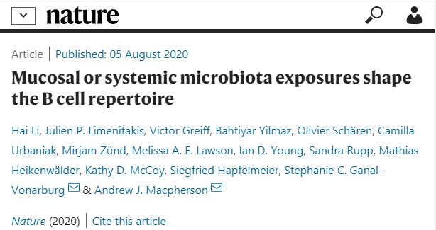 【Nature】新发现:肠道微生物影响B细胞和抗体库