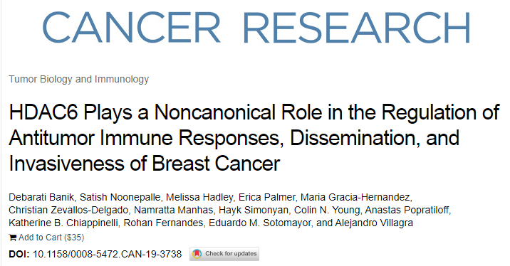 HDAC6在乳腺癌的抗肿瘤免疫反应、传播和侵袭性的调节中发挥着非典型的作用。