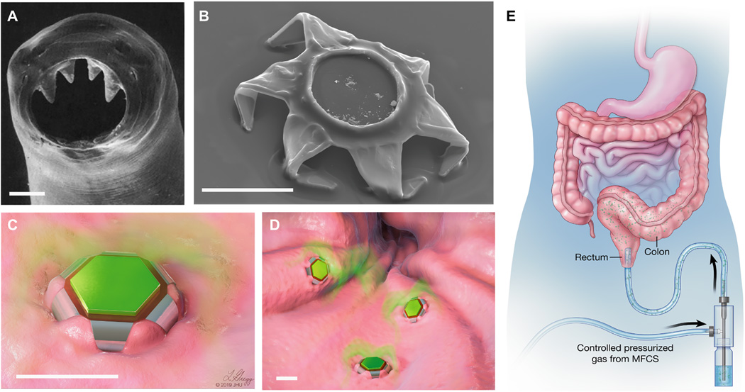 David Gracias教授和Florin M. Selaru博士领导了一组研究人员和生物医学工程师,设计并测试了可变形的微型设备,该设备模仿了寄生性钩虫附着在肠道的方式。