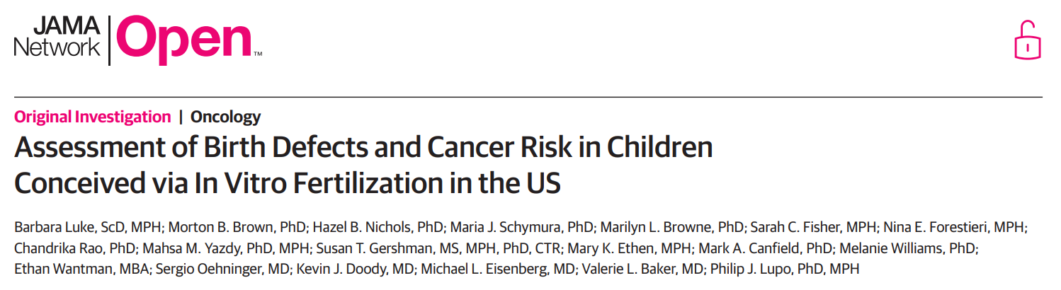 但是伴随着新技术而来的,还有一些隐藏的风险,而随着试管婴儿越来越多,这些潜在的风险或许会不断地暴露出来。2020年10月29日,JAMA 子刊 JAMA Network Open 杂志发表了一项题为:Assessment of Birth Defects and Cancer Risk in Children Conceived via In Vitro Fertilization in the US的研究论文。