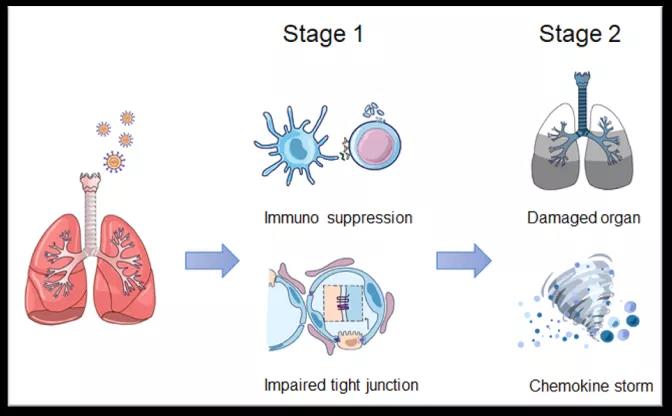 图1. 新冠病毒感染的“两阶段”机制