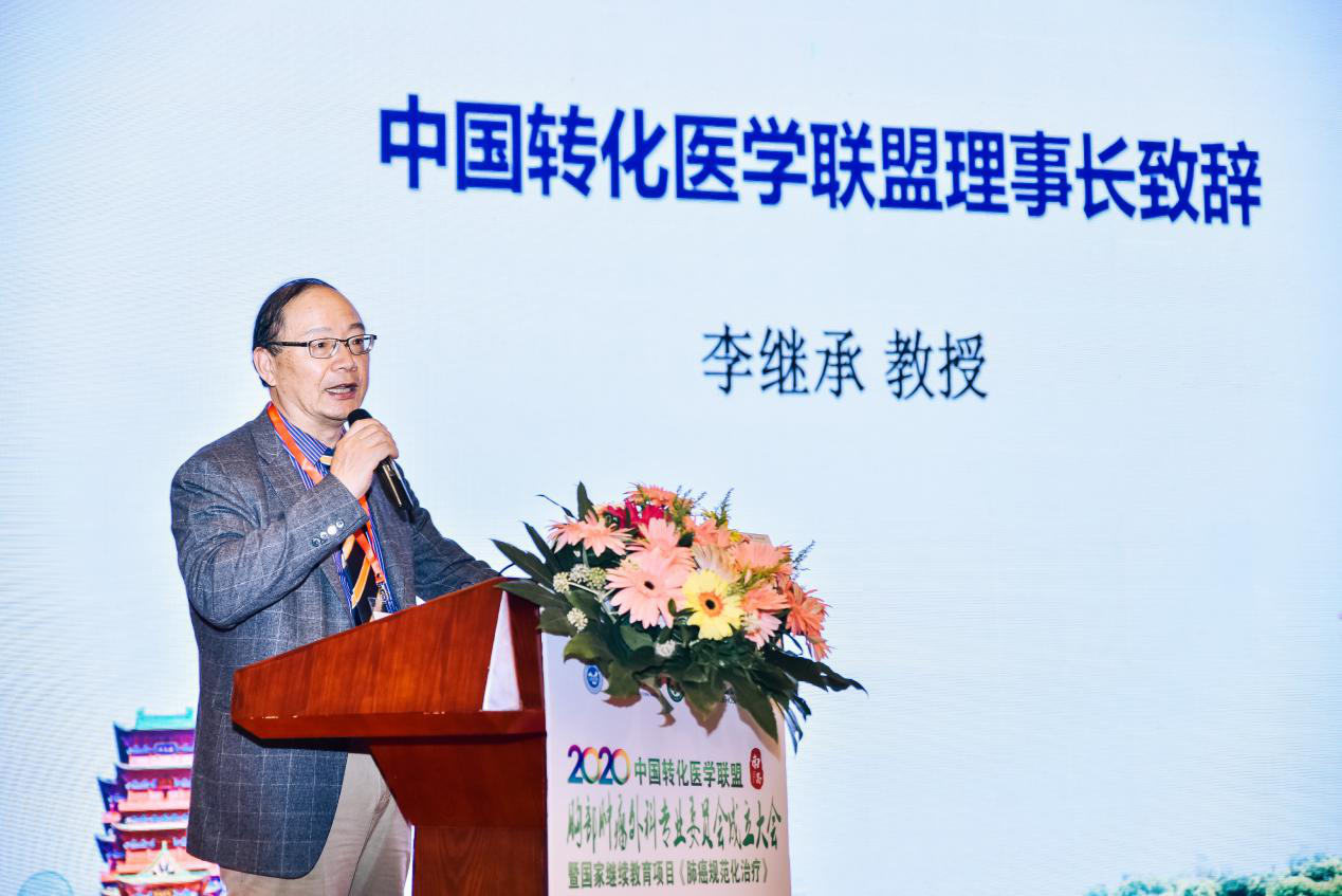 中国转化医学联盟主席、中国精准医学学会理事长李继承教授首先出席本次大会的各位专家领导表示了感谢,随后介绍了联盟的主要情况。2015年10月,联盟在魏于全院士、曹雪涛院士、陈志南院士等20余位专家和我国25家转化医学领域的重点单位联合倡议并于杭州筹建成立。随后学会以“政府搭台、学会架桥、人才引进、技术融资、企业落地、成果转化、精准医疗、服务健康”的理念举办了5次“中国转化医学大会暨中国精准医学大会”。目前,第六届中国转化医学大会暨中国精准医学大会已确定于2021年5月28日在成都召开。李教授同时对以毛伟敏院长为代表的胸外科领导班子,搭建了一个对胸外科专家而言十分优秀的转化医学平台表示感谢,并希望通过胸部肿瘤外科专委会的成立,能够发展发展建立一支高素质高水平转化医学胸外科肿瘤医师队伍,通过对产学研的研究,资源的整合和平台的建立真正实现转化医学的目的。