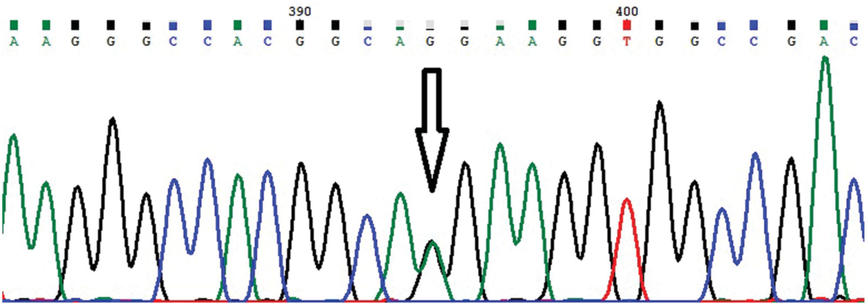基因分析证实了QuanTOF的检测结果。通过Sanger测序发现在HBA1基因上存在一个新的杂合突变[HBA1:C.182A→G],该突变导致密码子60处的编码从赖氨酸(分子量:146 Da)改变为精氨酸(分子量:174Da)。该结果与QuanTOF的检测结果一致。