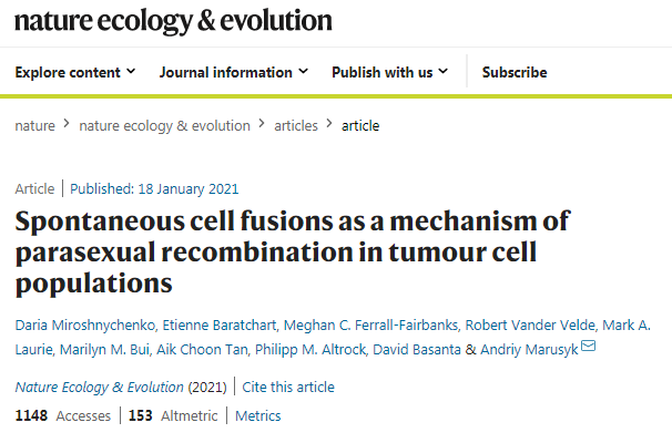 同时,科学家们普遍认为,肿瘤细胞缺乏无性重组,或是在不同细胞间交换和重组遗传物质的能力。但是,在《自然生态与进化》上发表的一篇新文章中,莫菲特癌症中心的研究人员证明了这种观念是错误的,癌细胞能够通过细胞融合来彼此交换和重组遗传物质。