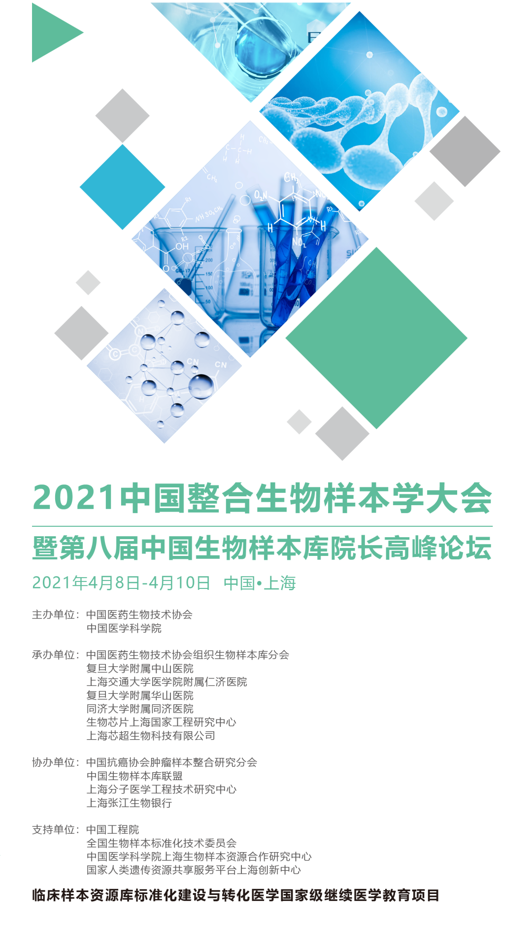 2021中国整合生物样本学大会暨第八届中国生物样本库院长高峰论坛,将于2021年4月8-10日在上海举办