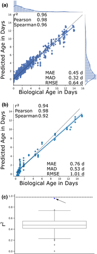 之前已经有各种各样的研究,试图找到衰老的生物标志物并预测个体的年龄,从蛋白质组学、转录组学、微生物组、脆弱指数评估到神经影像学和DNA甲基化。其中,最常见的预测因子(“衰老时钟”)是基于DNA甲基化。甲基化标记可以根据年龄依赖性的体细胞表观遗传学改变,来估计生物学年龄。然而,在一些不存在DNA甲基化的生物体内,尚不清楚表观遗传时钟是否存在,以及如何影响基因表达;基于转录组的“衰老时钟”研究,在数据上存在巨大差异,并且准确性相对较低。科隆大学的研究人员新开发了一种“衰老时钟”,可以直接从生物体的基因表达转录组中读取其生物年龄。研究结果发表在了《Aging Cell》杂志上,题为:“BiT age: A transcriptome‐based aging clock near the theoretical limit of accuracy”。