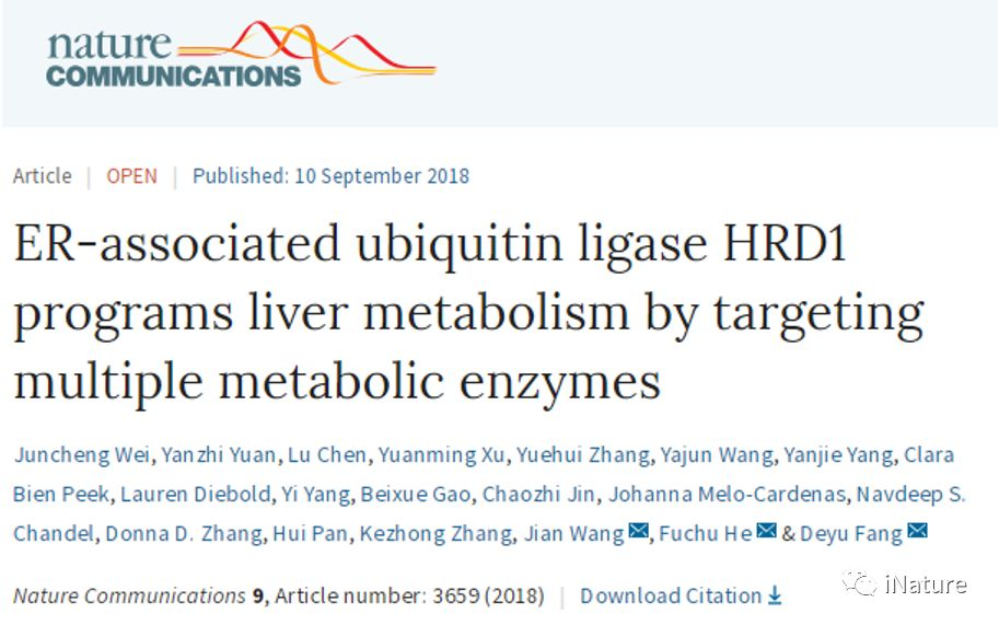 HMG-CoA还原酶降解蛋白(HRD1)已经被鉴定为内质网相关的错误折叠蛋白质降解的关键酶,但其器官特异性生理功能仍然尚未清楚。2018年9月10日,美国西北大学和北京蛋白质组研究中心贺福初、王建等人在Nature Communications上联合发表了题为“ER-associated ubiquitin ligase HRD1 programs liver metabolism bytargeting multiple metabolic enzymes”的文章。该研究发现HRD1可作为肝脏代谢调节剂和肥胖,脂肪肝疾病和与代谢综合征相关的胰岛素抵抗的潜在药物靶标。