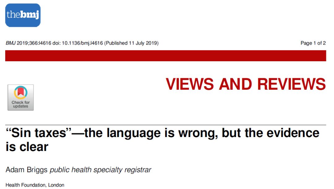 最后,BMJ 发表题为“Sin taxes—the language is wrong, but the evidence is clear”的点评文章,该文章指出在明确证据的基础上制定税收政策。