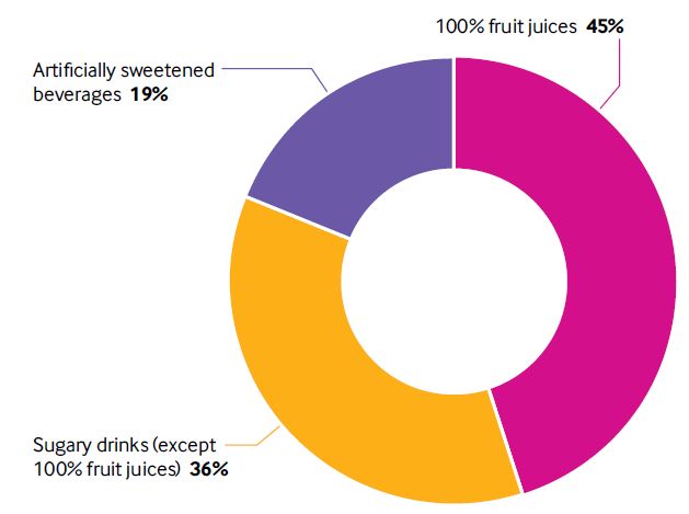 每种饮料类型对含糖饮料和人工加糖饮料总量的贡献
