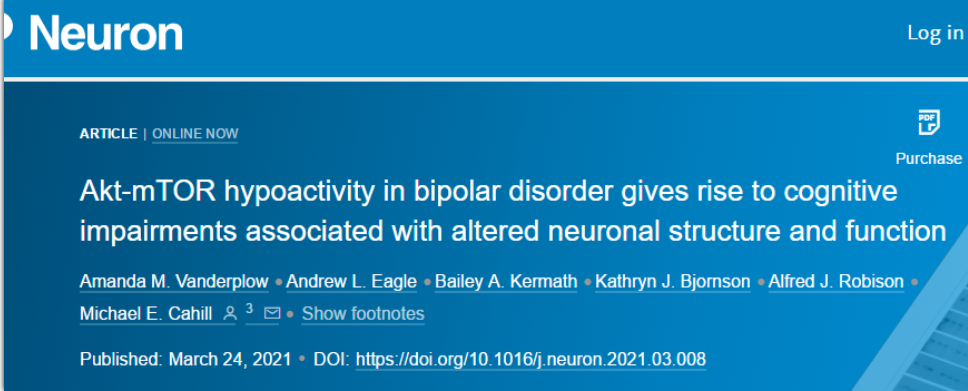 然而,在一项新的研究中,威斯康星大学( the University of Wisconsin-Madison)的科学家首次发现,Akt-mTOR机能减退会导致双相情感障碍患者的大脑变化,引发其记忆障碍。该研究发表在《Neuron》,题为“Akt-mTOR hypoactivity in bipolar disorder gives rise to cognitive impairments associated with altered neuronal structure and function”。