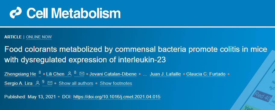 近日,有研究人员在《Cell Metabolism》期刊上发表了题为“Food colorants metabolized by commensal bacteria promote colitis in mice with dysregulated expression of interleukin-23”的论文。首次发现当人体免疫系统失调时,食用人造色素会导致结肠炎。