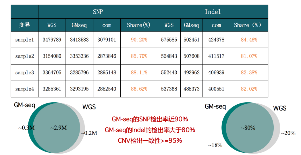 GM-seq测序数据采用信息分析手段进行全基因组数据分析,结果显示与相同样本的WGS一致的结果。