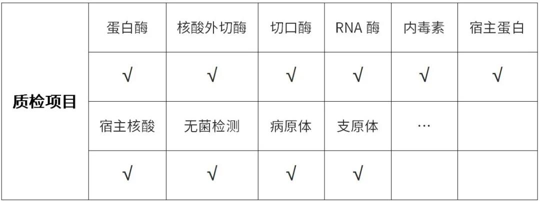 分别检测Rnase、核酸酶、切口酶、大肠杆菌DNA残留,经检测结果显示,成品无相关酶的残留,且表达的宿主DNA残留也达到了药典要求标准。
