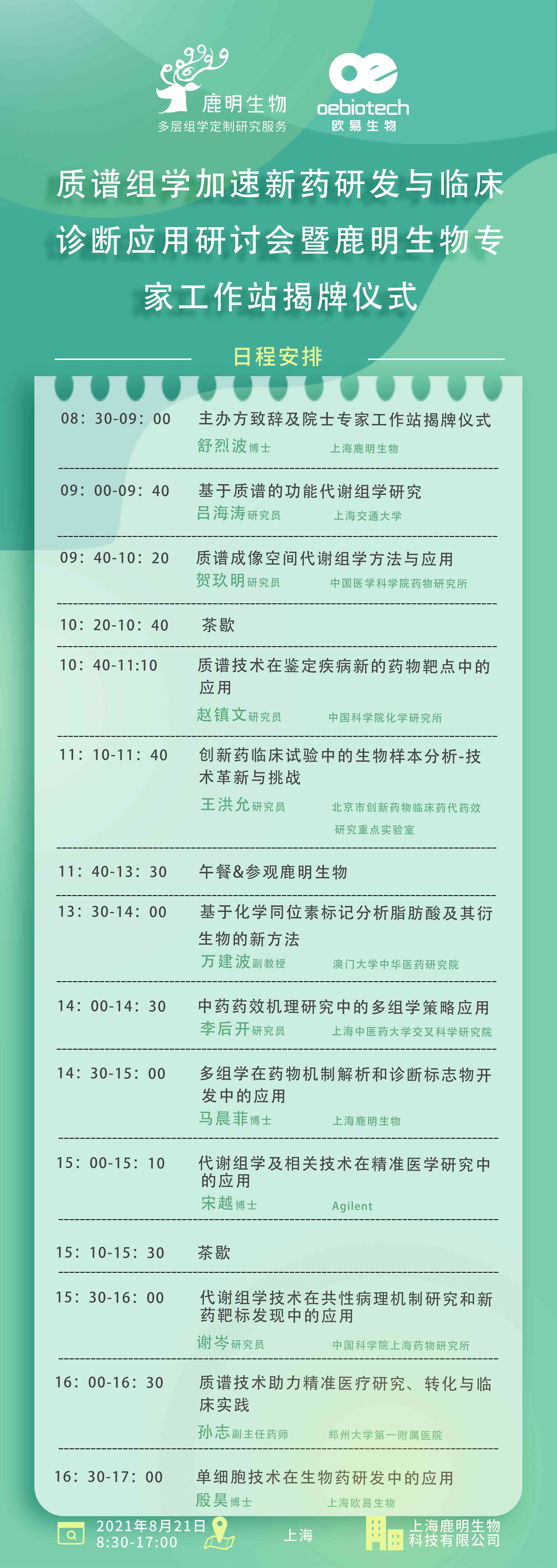 因此,鹿明生物为主办方将举办“质谱组学加速新药研发与临床诊断应用研讨会暨鹿明生物专家工作站揭牌仪式”会议,本次会议聚焦质谱组学、新药研发、临床诊断发展前沿与应用进展~欢迎各位老师的莅临~