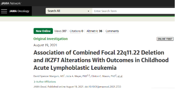 研究小组希望这一发现能为儿童白血病的治疗带来新的见解。例如,22q11.22局灶性缺失的频率表明它可能对白血病的发展很重要,并且与更差的预后相结合意味着它可能是未来有用的临床预后标志物。Schiffman说:“患有双缺失白血病的儿童可能需要更多的治疗或立即进行骨髓移植,而没有双缺失的儿童可能需要毒性较小的化疗来取得良好的效果。所有这些都需要进一步探索。”(转化医学网360zhyx.com)
